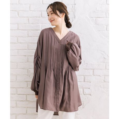 【上品な落ち感が魅力のシルキーローンピンタックチュニック】