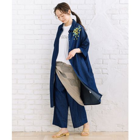 胸元に施したフラワー刺繍が、シンプルなデニムにやさしい表情をプラス。