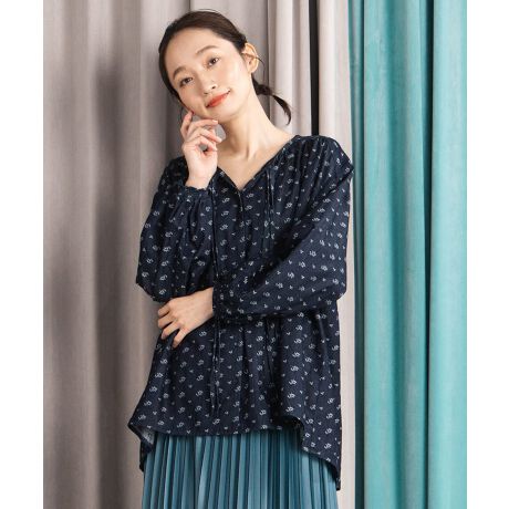【繊細な表情が映える、フラワージャカードデニムブラウス】