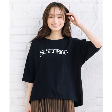 ロゴ部分にあしらったパールデコレーションが、カジュアルなTシャツに上品さをプラス。