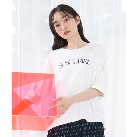 ロゴ部分にあしらったパールデコレーションが、カジュアルなTシャツに上品さをプラス。