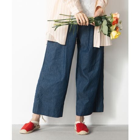 サイドに入ったピンタックが、自然に縦ラインを強調してくれるデニムパンツ。