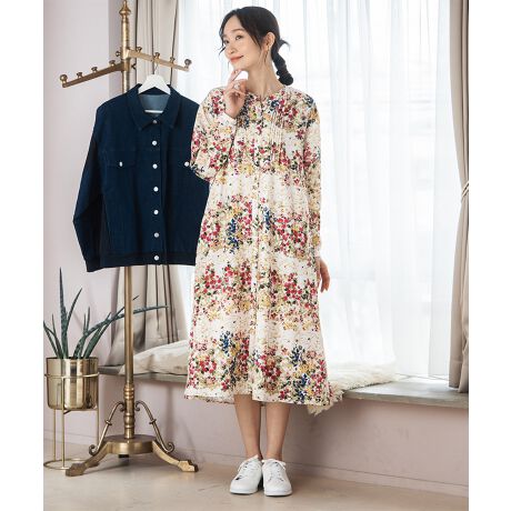 #大きいサイズコーデ #sabstreet #ワンピース #フラワープリント #ピンタック #大人カジュアル #ナチュラルコーデ