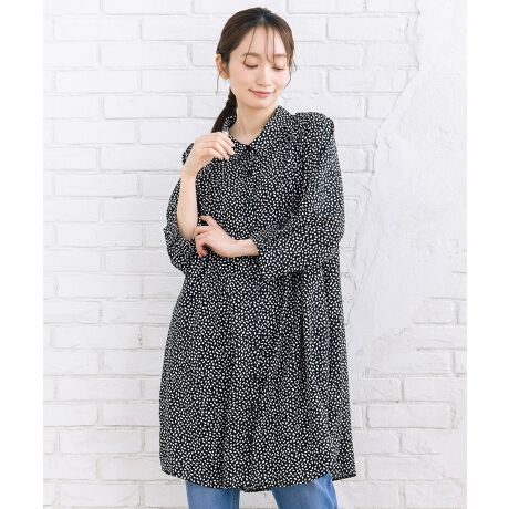 繊細なピンタックが縦ラインをつくり、すっきりとしたシルエットを演出するジョーゼットチュニック。