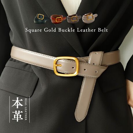スクエアゴールドバックル本革ベルト 【aroco/アロコ】