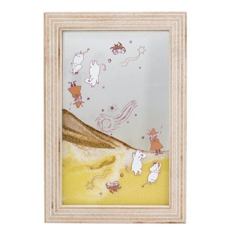 【砂が描く癒しの世界】ムーミンと楽しむ神秘的な砂のアートインテリア「サンドピクチャー ムーミン谷の彗星」【同じ景色は二度と見られない】逆さにする度に異なる砂の情景が現れる一期一会の美しさ◎【ゆったり落ちる砂に癒される】繊細な砂が空気の膜を通ってゆっくり流れる様子が心地いい♪【インテリアと知育を両立】お部屋を彩りながらお子さまの好奇心も育てるサイエンスアート!【表情を変えられる仕組み】インジェクターで空気調整すると砂の動きが変わって更に楽しさ無限大〇【可愛いムーミンデザイン】ポプラ合板の温かみあるフレームにキャラクターが映える癒しのアイテム。