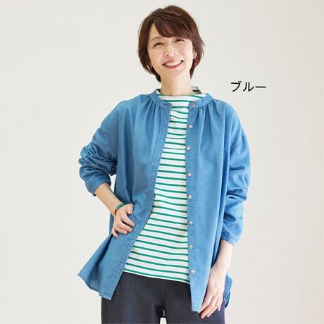 [型番:52245]光沢感がある上質なデニムシャツ体のラインを拾わずにゆったり着られて軽い着心地だから、1年を通してずっとお気に入りの一着に。気になるお尻をカバーするロング丈も大人の体形に合わせたこだわりです。素材/綿100% 中国製 手洗い
