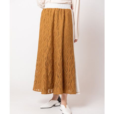 ウェアラブルなスウェット素材とレースをドッキングしたスカート。
