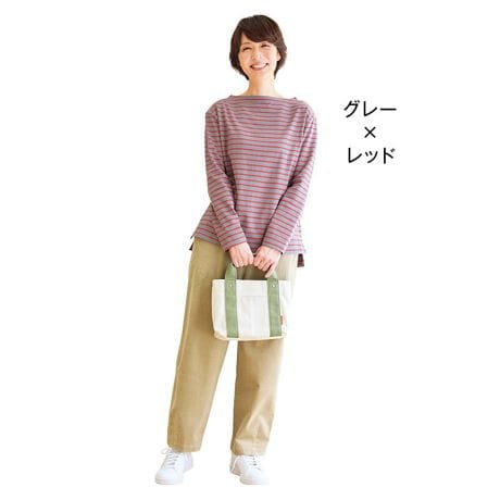 [型番:52276]ガンガン洗える定番「長袖Tシャツ」さえあれば!綿100%で肌にやさしい長袖Tシャツ。2色を混ぜたボーダーで顔映りがよく、カジュアルながら華やかな印象に。お洗濯をしてもヘタりにくく、長く愛用していただけます。素材/綿100% 中国製 洗濯機 *商品によって柄の出方が異なることがあります。