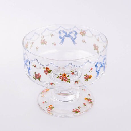 どこかレトロで懐かしさのあるデザートグラス。クリアなのでCath Kidstonのアートが際立ち、テーブルを華やかに彩ってくれるアイテムです。アイスやプリンなど、高さのあるデザートはもちろん、グラスに程よい高さがあるので、ヨーグルトや冷製スープなども入れていただけます。日常をちょっとだけ特別な気分にしてくれるアイテムです。グラスタンブラーやゴブレットグラスをお揃いでテーブルコーディネートするとより華やかでHappyに♪ロゴ入りのピンク色のBOXに入った状態でのお届けになります。