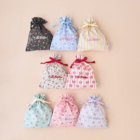 リボンロゴの刺繍がキュンとさせてくれる巾着ポーチに新しいアートが登場です!薄手のコットン素材なので、嵩張らずにお使い頂けます。同じシリーズのバッグやポーチとお揃いでお使いいただくのもおすすめです◎【Ribbon Bow】今シーズンイチオシのリボンアート。ストライプ調なので程よく大人っぽい仕上がりです。様々なアイテムで、カラー豊富に展開予定です。【Lace Hearts】レースハートにローズが描かれた、Cath Kidstonらしさが詰まったアート。ドットの組み合わせがポップな印象です。【gingham】一般的なギンガムチェックは織りで表現した、線が直線のものがほとんどですが、Cath Kidstonはギンガムチェックも手描きのアートになっています!手書きならではの線のナチュラルさや、紙の質感までもが感じられる、温かみのあるアートになっています。【Roses and Hearts】ローズの蕾と小さなハートが散りばめられたアート。アーカイブからアレンジされたアートは、ブラックやアイボリーベースで大人っぽい仕上がりです。【Flower Stripe】イエローのストライプにピンクのお花がポップで可愛らしいアート。どこか懐かしさを感じさせてくれる、レトロなデザインです。【Hankie rose】ミントカラーのベースにピンクのお花が散りばめられた優しい印象のアート。キュンとするような懐かしさのある、アーカイブのアートです。【Gingham Bunches】手書きのギンガムチェックにミニブーケが散りばめられたフェミニンなアート。新作のアートを一足早くお披露目です。