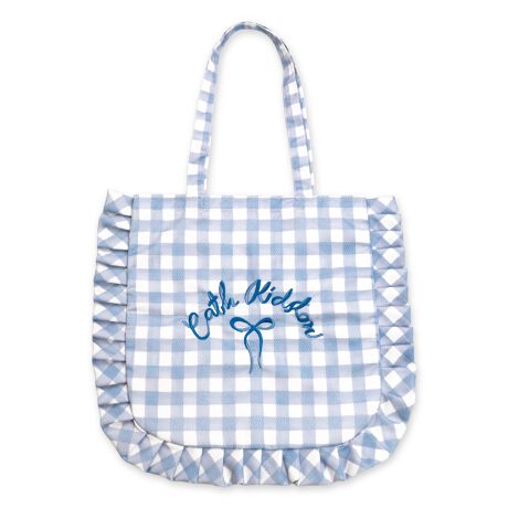 レトロな小花柄の間にハート型のボタンが散りばめられたCath Kidstonらしさ溢れるアート。お花に寄り添う手書きロゴがさりげないポイントになっています。とびきりフェミニンな魅力がたっぷり詰め込まれたフリルトートバッグは、刺繍で施したリボンロゴが最大のポイント。生地はしっかりとした程よい厚手タイプなので、型崩れしにくく、綺麗な形でお使いいただけます。肩から掛けて持っていただける、長めのハンドルです。内側にはポケット付き。