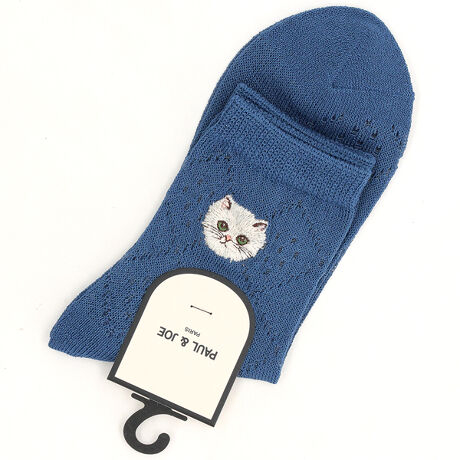 [型番:PJL663073-]手編み風のダイヤ柄メッシュに小さいジプシーの顔が刺繍されたロークルーソックス。涼しそうなデザインが夏にピッタリです。