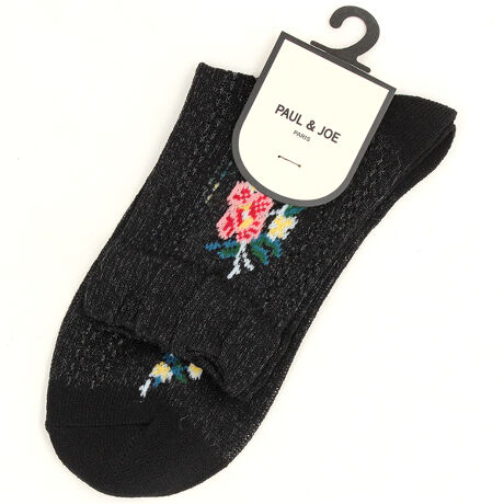 ポール & ジョー ルミー風サイド花ストライプ ロークル丈ソックス
