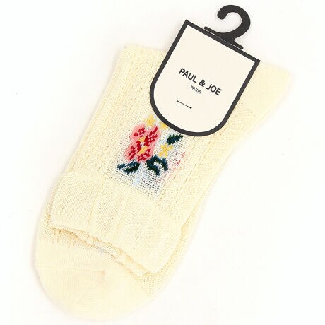 ポール & ジョー ルミー風サイド花ストライプ ロークル丈ソックス