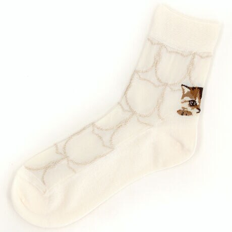 ポール & ジョー カラーシースルー猫リング踵ヌネット柄 ロークル丈ソックス