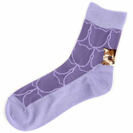 カラーシースルーのラメ猫リング柄ロークルーソックス。かかと部分にヌネット柄が入っているので、後ろからちょこっと見えるキュートなデザインです。
