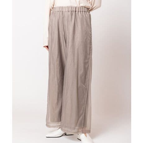 ミニマルなパンツにレイヤードしたシアーが、スタイルに奥行きを与える。