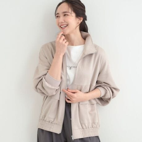 マシュマロタッチの柔らかいカットスエードを使ったスタンドブルゾン。