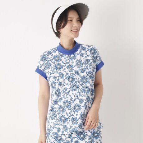 この夏映えゴルフトップスは、陶器模様を思わせる上品なワントーンのひまわり柄が特徴です。