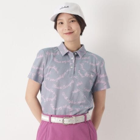【スポーティーに遊ぶ、可愛い総柄ロゴポロシャツ】
