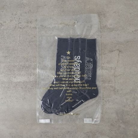・3つのソックスには違うワードがジャカードで入っている