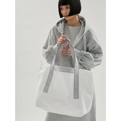 ジャガード織のテープはemmiオリジナルのジャガードテープが目を引く、ビックトートバックが登場。