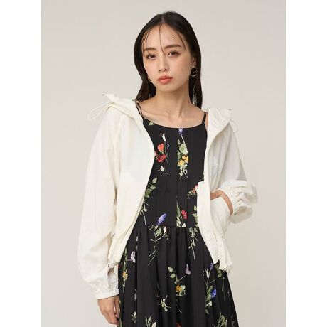 軽やかなナイロン素材のフェミニンなフーデッドパーカーです。フルジップでハイネックデザインになるデザイン。フードと裾の少し上の位置にゴムのドロストを加え、シルエットを調節いただけます。裾ドロストはキュッと絞るとギャザーフリル見えするデザインで上品に仕上げました。袖口もゴム入りでフィット感をプラス。胸元にSNIDELロゴワッペンを生地と同色でのせ、さりげないアクセントに。ポケット付き。シボ感を加えてニュアンスを出した薄軽生地を使用。フェミニンなお洋服とも相性抜群です。コットン素材のエンブロイダリースカート(SWFS261244)とセットでのご着用もおすすめです。