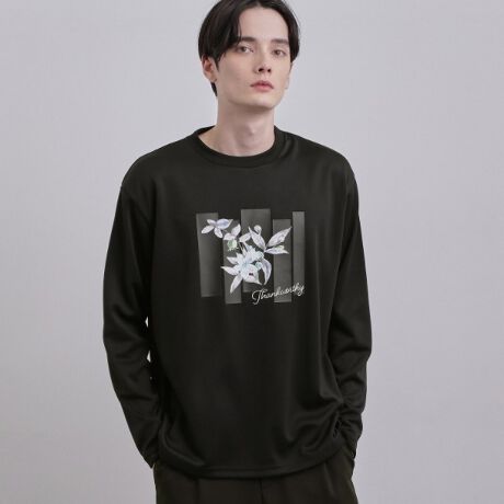 フロントにあしらった、独創的なグラフィックが目を惹くロングスリーブTシャツ。