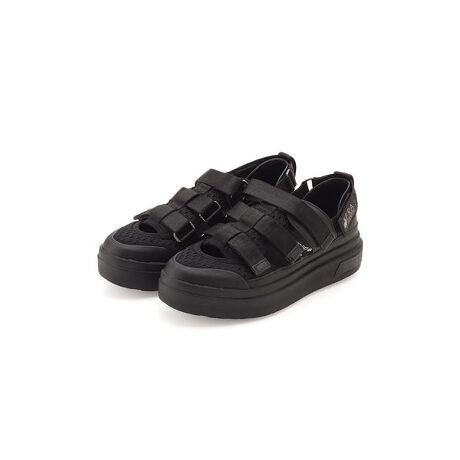 存在感のあるベルトデザインとカッティングから覗く素足のバランス感が絶妙な1足。ライニングには接触涼感素材を使用し、暑い時期でも快適に過ごせます。ボリュームがありつつも抜け感があり、カジュアルにも女性らしいスタイリングにも合わせやすいアイテムです。