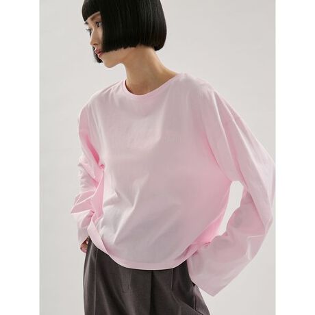 emmiロゴの刺繍を施したシンプルなロンT。1枚でサマになる、ややショート丈で抜け感のあるカットトップス。コーディネートを問わずデイリーに着用できます。