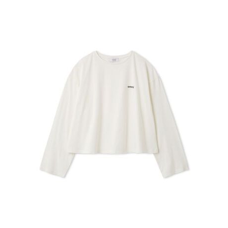 emmiロゴの刺繍を施したシンプルなロンT。1枚でサマになる、ややショート丈で抜け感のあるカットトップス。コーディネートを問わずデイリーに着用できます。