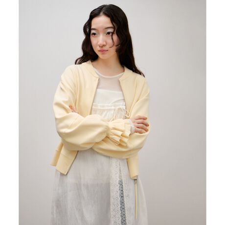華やかな手元のフリルデザインが魅力のニットカーディガン。