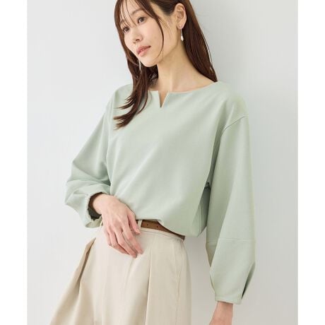 ・ランタンスリーブがポイントの、オンオフ問わず着用可能なトップス。