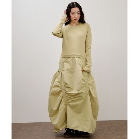 ふんだんに施したギャザーディテールが魅力的なニットコンビワンピース。