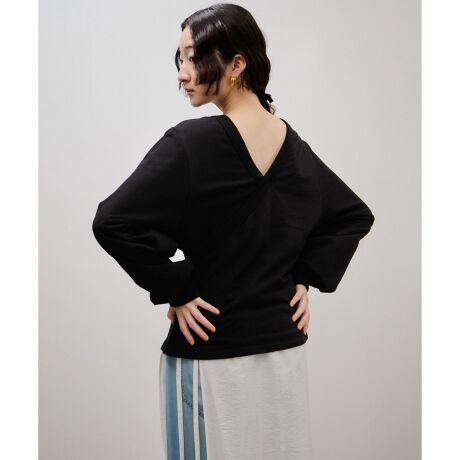 腕周りにはゆったりとしたゆとりを持たせ、ウエストは体に沿ってシェイプしたメリハリシルエットの裏毛スウェット。