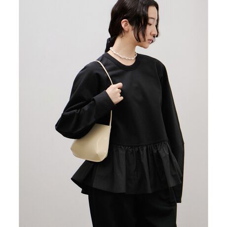 後ろに施したボタンあきディテールがポイントのペプラムコンビプルオーバー。