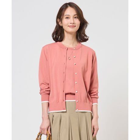 ■デザイン洗練されたシンプルさが魅力のクルーネックカーディガン。ベーシックなデザインながらも、サイドに施されたさりげない編地切り替えがアクセントに。季節の変わり目の温度調整や、冷房対策としても重宝し、1枚持っていると着こなしの幅がぐっと広がる頼れるアイテムです。同素材のニットとアンサンブルで合わせれば、統一感のあるスタイルが完成します。釦には、上品な印象の貝釦をあしらい、細部にまでこだわった、大人の女性にふさわしいアイテムです。カラーは、上品でやわらかな印象のライトベージュ(#002)、顔色を華やかに見せるローズピンク(#012)、爽やかで知的なアクア(#072)、シックで引き締まったネイビー(#075)の4色展開です。