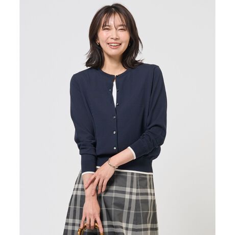 ■デザイン洗練されたシンプルさが魅力のクルーネックカーディガン。ベーシックなデザインながらも、サイドに施されたさりげない編地切り替えがアクセントに。季節の変わり目の温度調整や、冷房対策としても重宝し、1枚持っていると着こなしの幅がぐっと広がる頼れるアイテムです。同素材のニットとアンサンブルで合わせれば、統一感のあるスタイルが完成します。釦には、上品な印象の貝釦をあしらい、細部にまでこだわった、大人の女性にふさわしいアイテムです。カラーは、上品でやわらかな印象のライトベージュ(#002)、顔色を華やかに見せるローズピンク(#012)、爽やかで知的なアクア(#072)、シックで引き締まったネイビー(#075)の4色展開です。