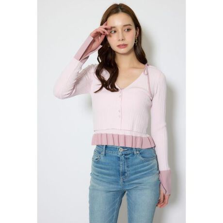 【配色デザインがポイントのキャミソールセットカーディガン】■ポイント配色デザインがポイントのコンパクトなサイズ感で仕上げたキャミソールセットカーディガンが登場!表面感があるリブ編みがポイントです。それぞれを単品使いしていただけます◎■ディテールキャミソールとカーディガンはあえて異なる見え感のリブ編みで表面感を出し、遊び心あるアイテムに仕上げました。キャミソールの裾は動きが出るようなフリルを施し、カーディガンを羽織ってもバランスよく見えるように作りました。■スタイリングデニム合わせでカジュアルに着ていただくのも、タイトスカート合わせで女性らしくエレガントなコーデに仕上げるのもおすすめです。■生地透け感:なし裏 地:なし伸縮性:あり光沢感:なし厚 さ:薄手■商品のお気に入り登録お気に入りアイテムの再入荷・在庫1点などの通知を受け取ることができます。[注意事項]※画像の商品はサンプルです。実際の商品と仕様、加工が若干異なる場合があります。※画像の商品は光の照射や角度、お使いのモニター環境により、実物と色味が異なる場合がございます。※着用、お取り扱いの際は、アテンションタグをご確認ください。