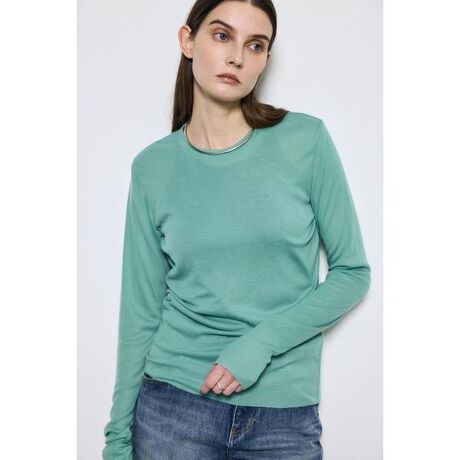 ■シアー素材ロングTシャツ■ポイント程よい透け感が魅力の、シアー素材ロングTシャツ。軽やかな素材感で、スタイリングに抜け感とトレンド感をプラスしてくれる1枚です。■ディテール繊細なシアー素材を使用し、やわらかく軽い着心地が特徴。肌をきれいに見せる程よい透け感で、ヘルシーな印象に仕上げています。ベーシックなクルーネック仕様で、レイヤードしやすいデザイン。身体にフィットしすぎないシルエットで、1枚でも重ね着でも使いやすいバランスです。■スタイリングキャミソールやタンクトップの上に重ねたレイヤードスタイルがおすすめ。ジャケットやベストのインナーとして、透け感をアクセントにした着こなしも◎。デニムからスラックス、スカートまで幅広いボトムと相性良く、ロングシーズン活躍します。■生地もちっとしつつも、さりげない透け感のある生地です。滑らかなタッチと、強い伸縮性が特徴で、着心地もタッチも良い生地に仕上がっています。透け感:あり裏 地:なし伸縮性:あり光沢感:なし[注意事項]※画像の商品はサンプルです。実際の商品と仕様、加工が若干異なる場合があります。※画像の商品は光の照射や角度、お使いのモニター環境により、実物と色味が異なる場合がございます。※着用、お取り扱いの際は、アテンションタグをご確認ください。