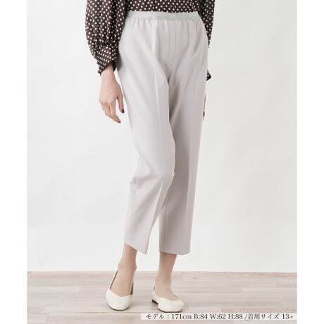 夏の装いを快適に彩るクロップドパンツです。伸縮性に優れた素材とウエストゴム仕様で、リラックスした履き心地を実現しました。すっきりとしたクロップド丈は足元に軽やかな抜け感を演出し、どんなトップスともバランス良くまとまります。日常使いからお出かけまで、幅広い場面で活躍する重宝な一本です。