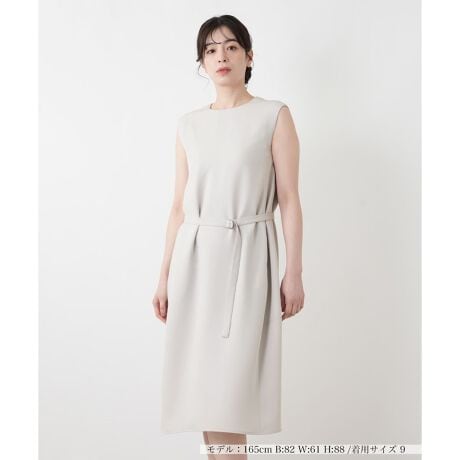 ミニマルで端正な佇まいが大人のエレガンスを後押しするワンピースです。首元をすっきりと見せるネックラインと、二の腕を綺麗に映し出すノースリーブが、涼やかで知的な印象を与えます。付属のベルトを締めればメリハリのあるシルエットに、外せばリラクシーなサックワンピースとして、気分に合わせた着こなしを楽しめるのもポイント。背中のファスナー仕様がバックスタイルをスマートに引き締め、初夏のオケージョンからデイリーまで幅広いシーンで凛とした美しさを放つ一着です。