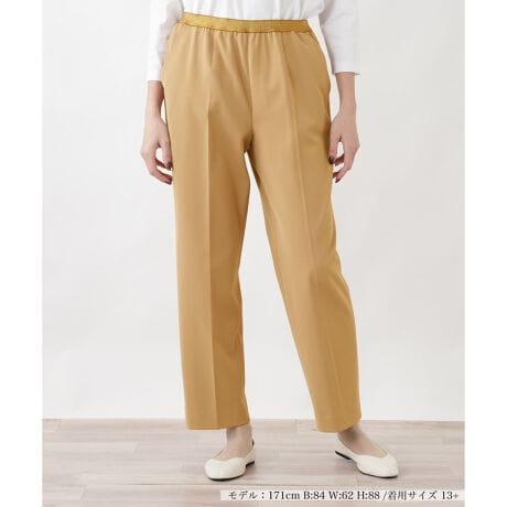 暑い季節にも心地よくお召しいただける、ストレートシルエットのパンツ。脚のラインを拾いすぎず、まっすぐ美しく見せてくれるデザインが魅力です。伸縮性のある素材とウエストゴムで、長時間の着用でも疲れにくい快適さを追求しました。日々のコーディネートの基盤となる、頼れる一本です。