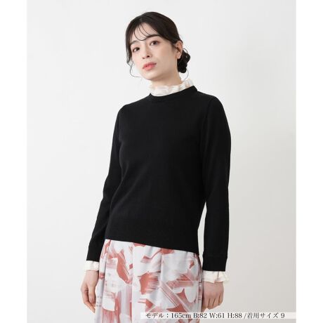 襟元と袖口に施されたチュールフリルが、顔周りと手元に可憐な華やぎを添えるニットトップスです。柔らかなクルーネックに沿うフリルが、シンプルなデザインにレディなアクセントをプラス。程よく身体にフィットする伸縮性を持ちながら、薄手の生地感で初夏のコーディネートを軽やかに演出。バックにはさりげないスリットとボタンを配し、細部までこだわりを感じさせる一着に。デニムとのカジュアルな着こなしから、きれいめなスカートスタイルまで、幅広いコーディネートに上品な甘さを添えてくれます。