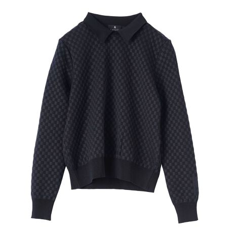 14ゲージ袋ジャカードで織り上げた上質な市松柄プルオーバー。立体感と透明糸の膨らみが奥行きのある編地を表現し、襟付きデザインと柔らかな陰影が上品な印象を与えます。軽さとハリ感を兼ね備えた素材がシーズンを通して快適な着心地を実現。一枚で着映えし、ジャケットインにも映える上品な柄感が、日常の装いを豊かに彩る一着です。