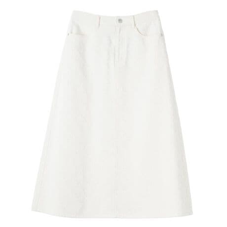 格子状のダメージ加工を施した独特の生地が、奥行きのあるニュアンスをもたらすスカートです。やや薄手のさらりとした肌当たりで、裾に向かって緩やかに広がる台形シルエットが大人の女性にふさわしい上品で落ち着いた佇まいを叶えます。ウエストの後ろ部分はゴム仕様になっており、端正なフロントのルックスを維持しながらリラックスした穿き心地を実現しました。膝下をしっかりとカバーしつつ足首を覗かせる丈感でサンダルやパンプスとも好相性。