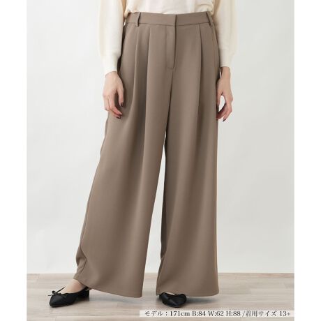 流れるようなシルエットが美しい、「NEMIKA」のワイドパンツ。リラックスした履き心地ながら、エレガントな雰囲気を演出します。付属のベルトでウエストをマークすれば、スタイルアップ効果も期待できます。ウエストはゴム仕様で快適さも追求。シンプルなトップスを合わせるだけで、洗練された大人の着こなしが完成します。