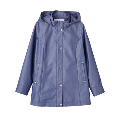変わりやすい天候やアクティブなお出かけに嬉しい、撥水加工を施した機能的なフーデッドコートです。フロントはスナップボタンとファスナーのダブルクロージャー仕様で風の侵入をしっかりと防ぎつつ、すっきりとした表情を演出。フードは取り外しが可能なため、その日のスタイルやシーンに合わせてスポーティーなパーカスタイルから上品なスタンドカラーコートへと自由にアレンジが楽しめます。季節の変わり目の羽織りとして重宝し、スタイリッシュにアップデートしてくれるアウターです。