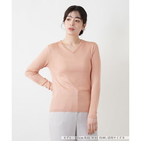 シルクならではの滑らかな肌触りと上品な光沢が、大人の日常に贅沢な心地よさをもたらすリブ編みのニットトップス。デコルテを美しく見せる絶妙な開きのVネックが、顔周りをすっきりとシャープな印象に。程よく身体にフィットするシルエットは、一枚での着用はもちろん、ジャケットのインナーとしても重宝します。初夏のコーディネートに相応しい軽やかな薄手のニットで、カジュアルなボトムスと合わせても洗練された佇まいに仕上がる一枚です。